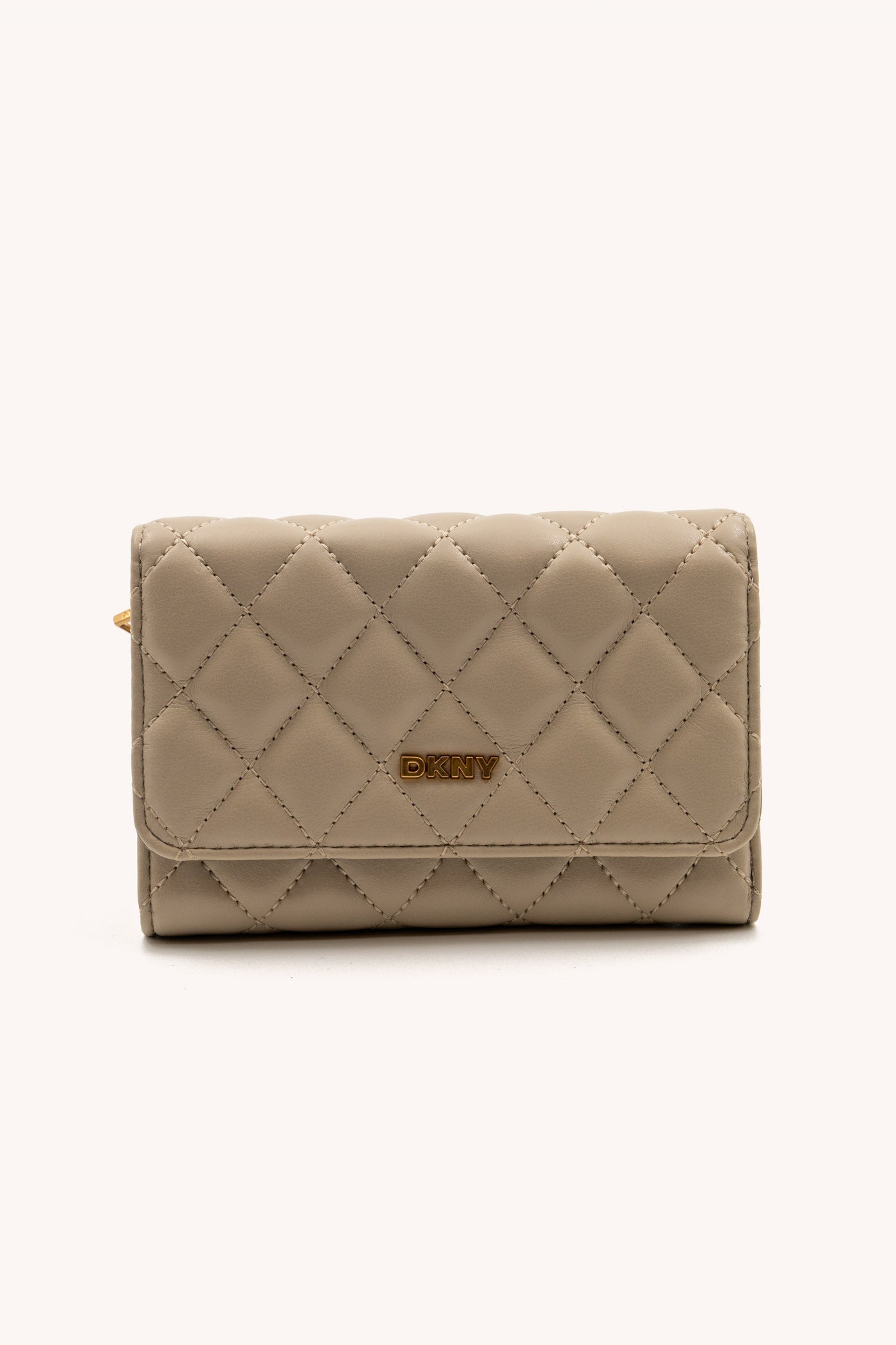 The DKNY Trina Tri-Fold Wallet in classic brown seamlessly blends sophistication with function. Thoughtfully designed, it features multiple card slots and a secure snap closure, ensuring your essentials are organized and stylish. Perfect for everyday use or as a chic accessory.