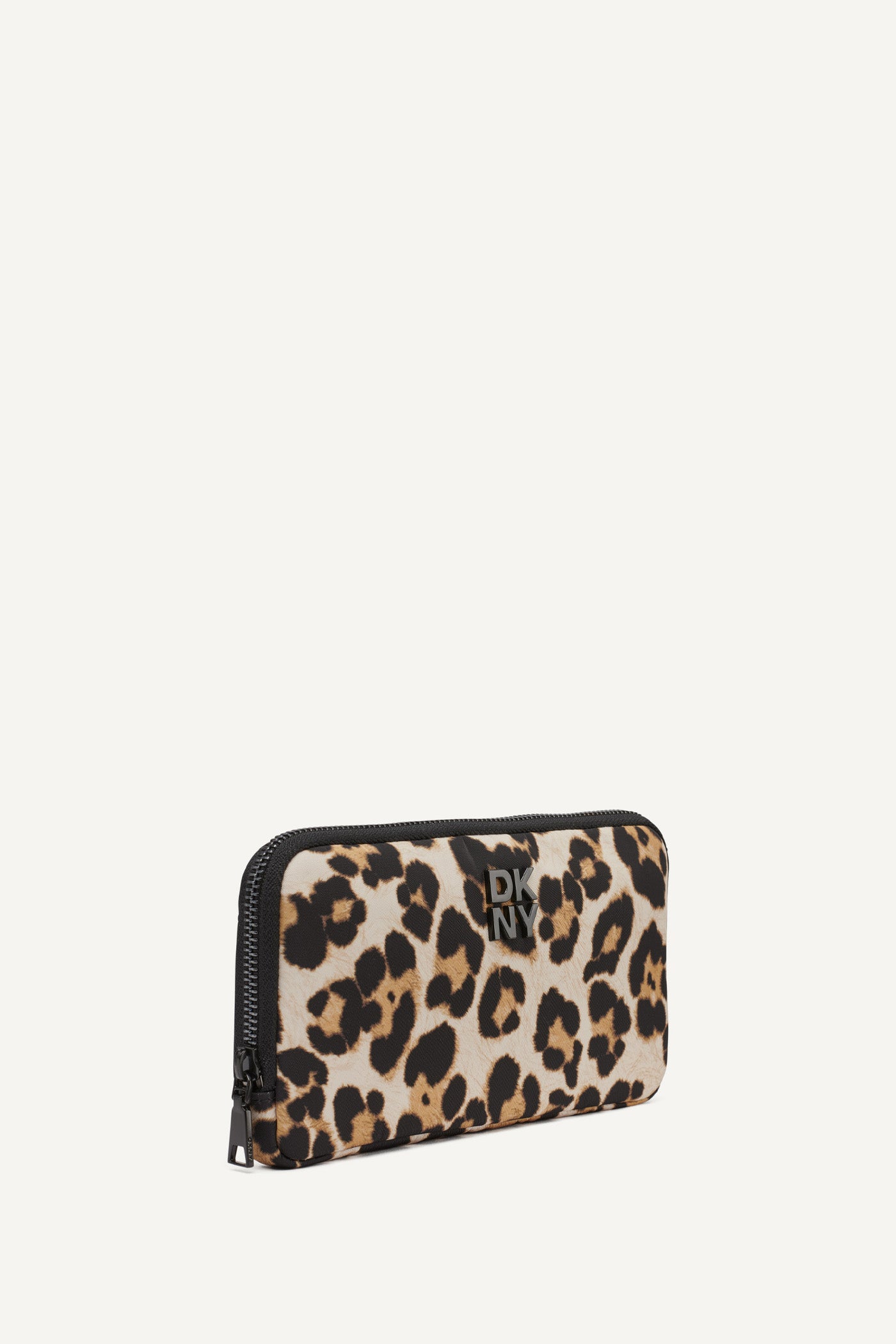 Elevate your accessories with the DKNY Jenny Zip Around Wallet in vibrant multicolour. This stylish wallet features ample space for cards and cash, secure zip-around closure, and signature DKNY branding, blending practicality and chic sophistication for everyday organization.