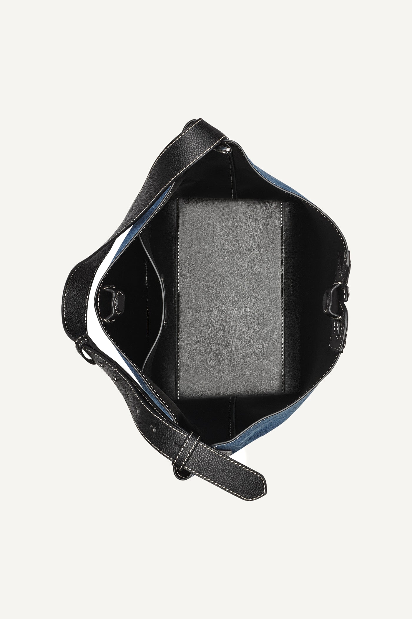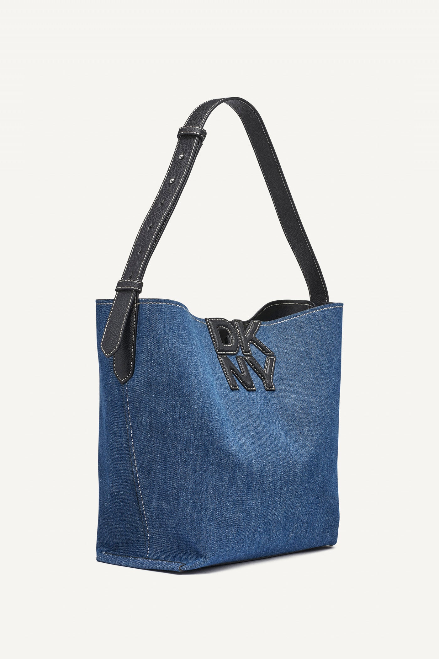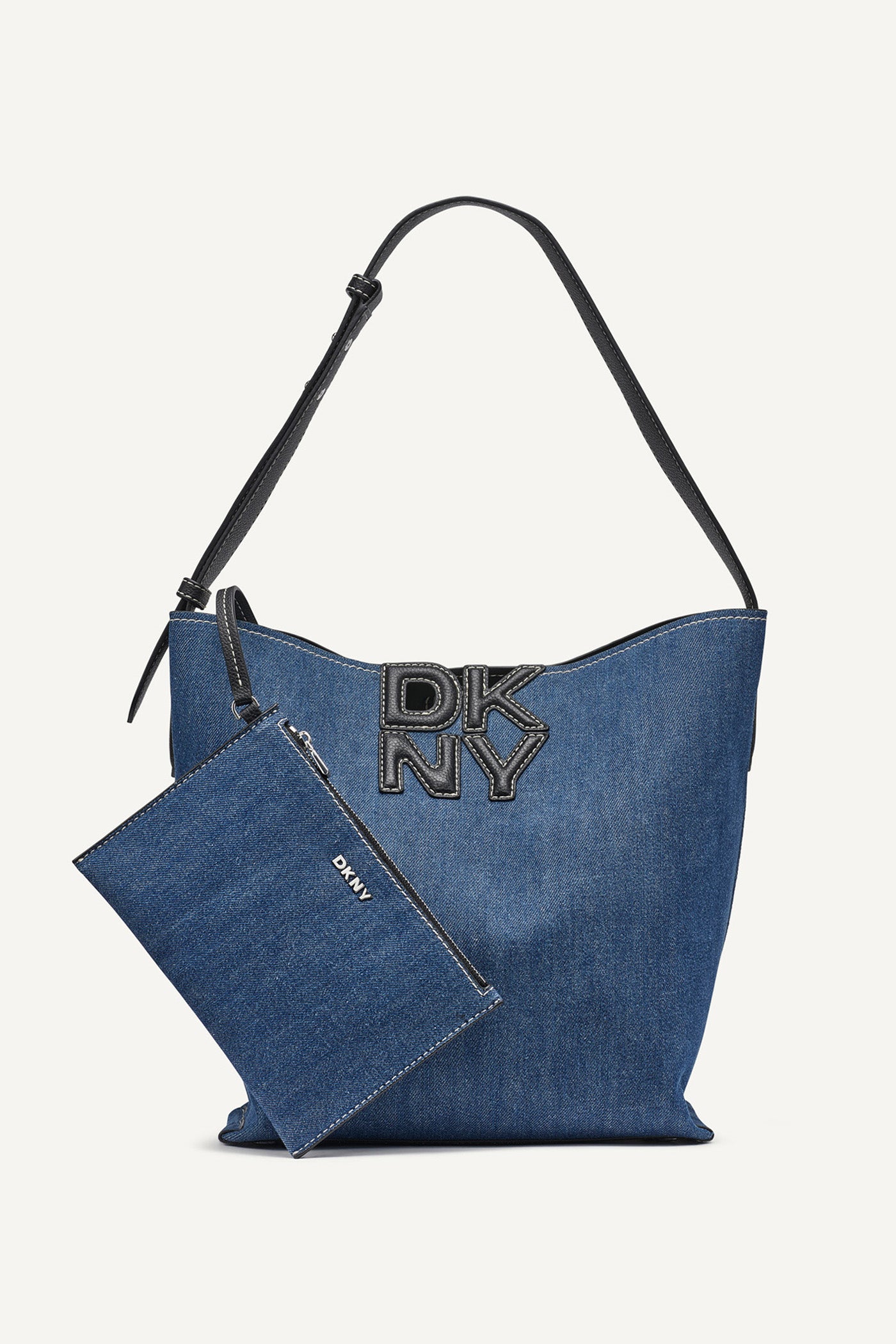 Chic and versatile, the DKNY Nicole Bucket bag in classic DENIM elevates your everyday look. Crafted with premium materials, this spacious bucket silhouette features a drawstring closure, sleek hardware, and a comfortable strap for effortless carrying, blending style and practicality.