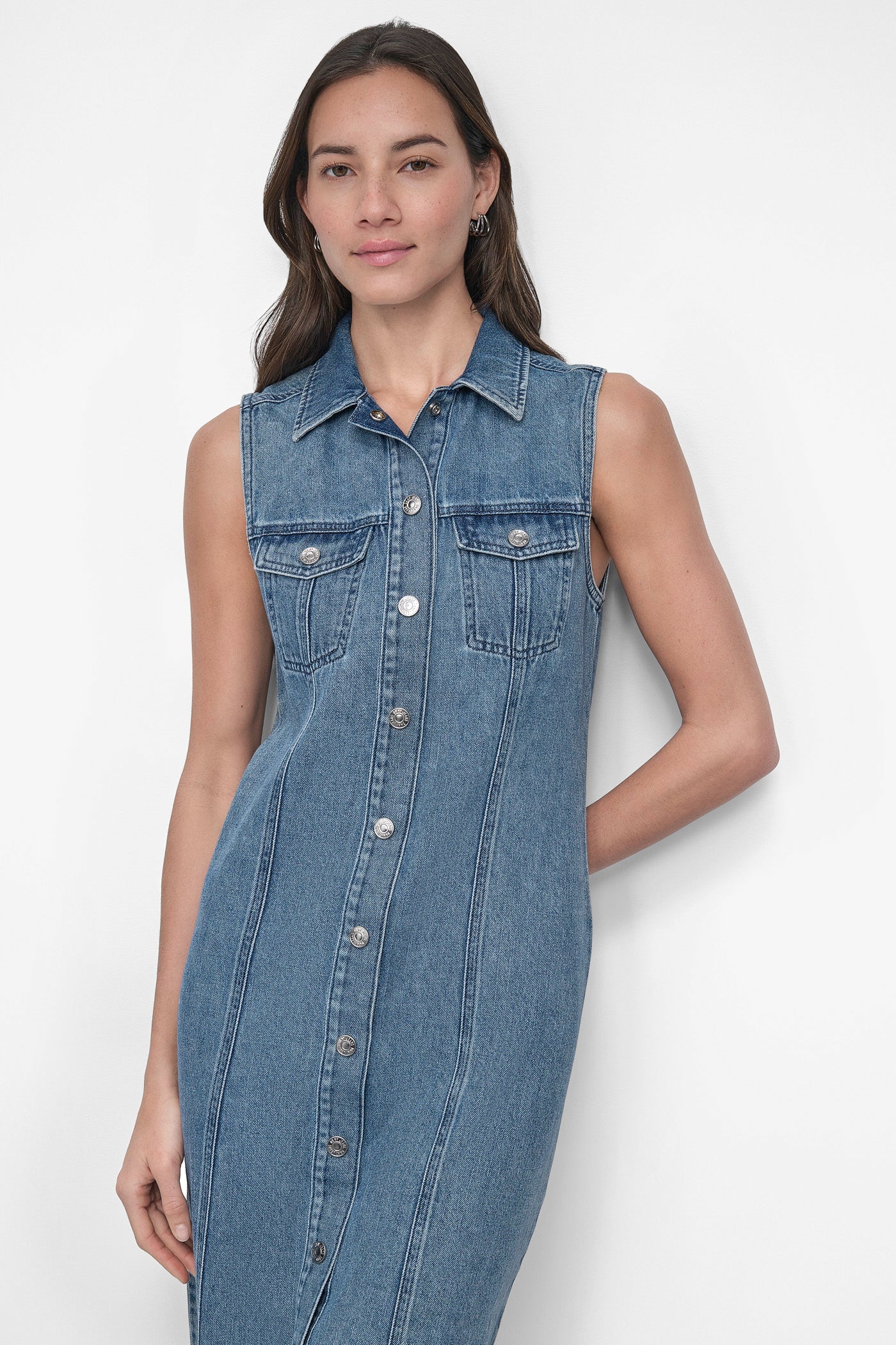 Elevate your look with this DKNY Maxi Sleeveless Dress in striking blue. Featuring a flowing silhouette and chic design, it's perfect for any occasion. Lightweight fabric ensures comfort, while its timeless style promises effortless elegance in every step.