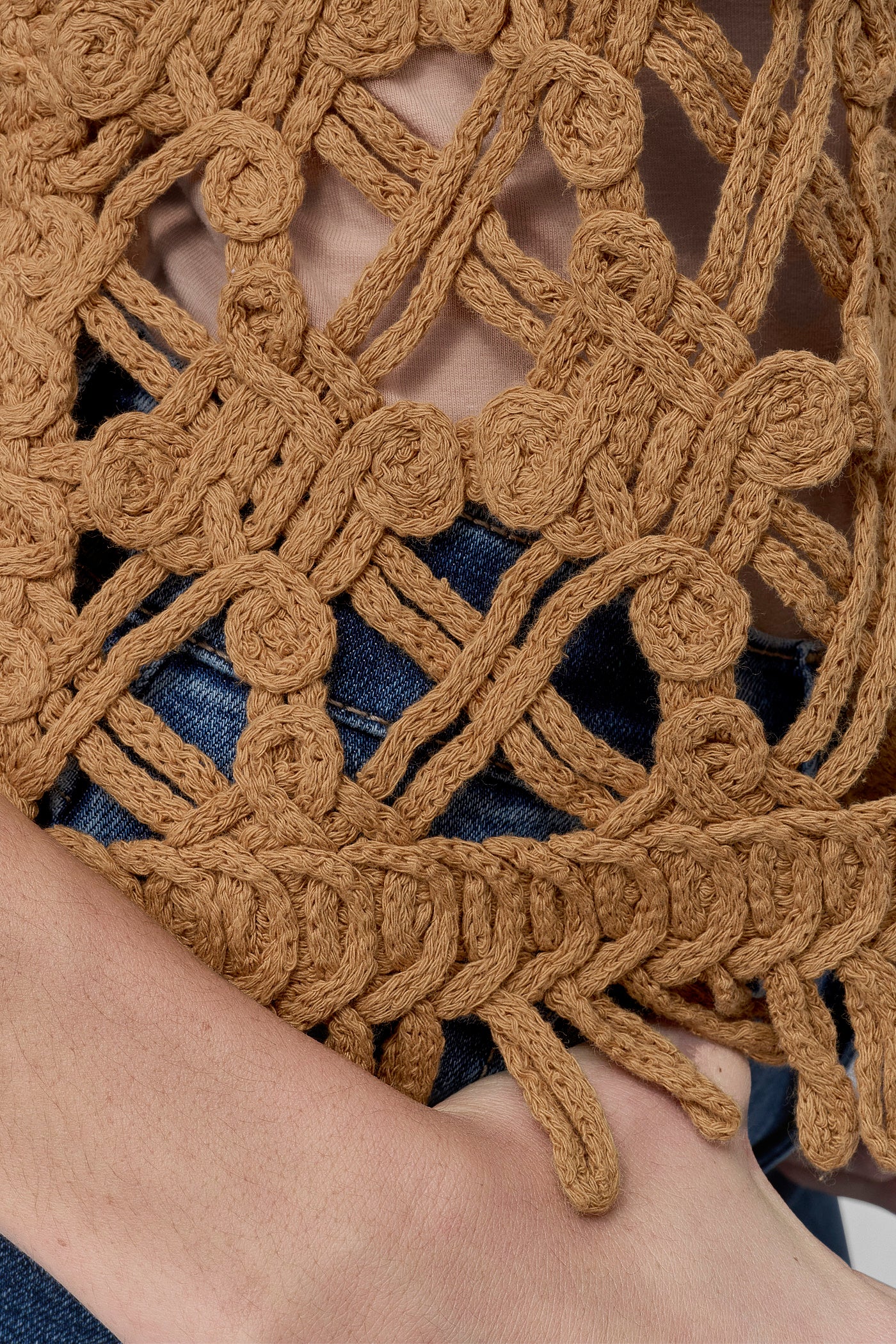 Elevate your wardrobe with the DKNY Crochet Scoop Neck Top in vibrant orange. Featuring intricate crochet detailing and a flattering scoop neckline, this stylish top combines effortless charm and breathable comfort-perfect for layering or making a bold statement on sunny days.