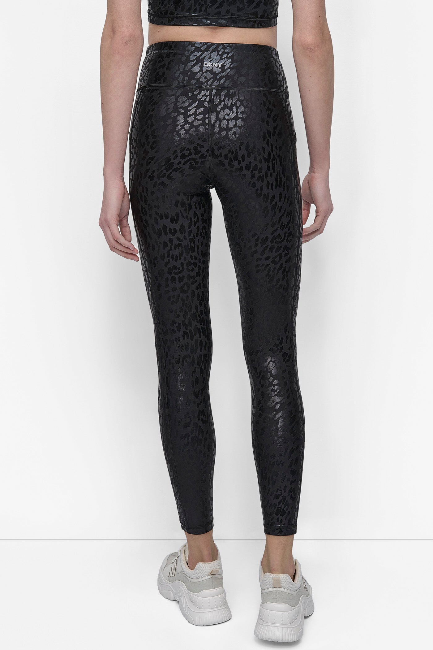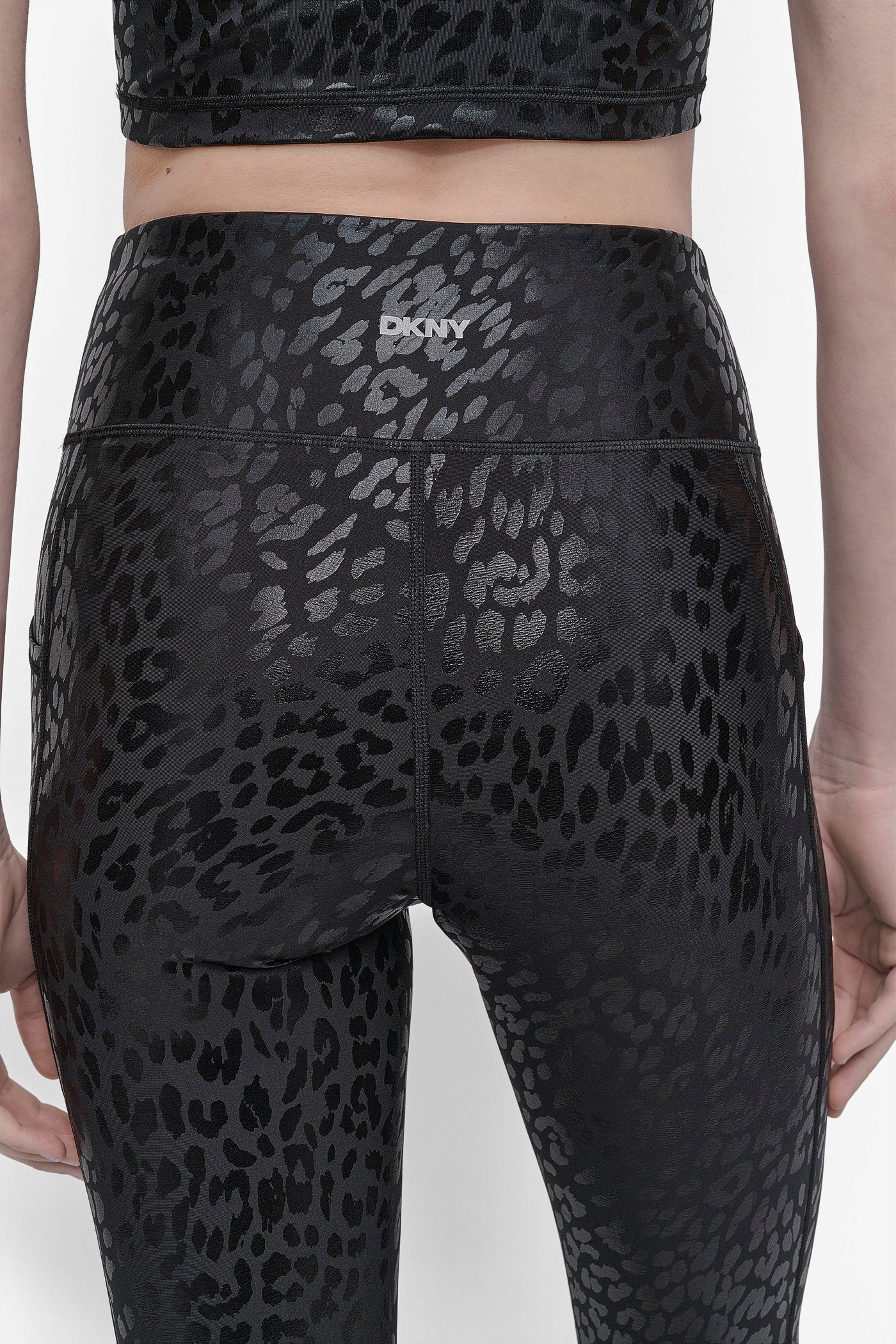 Elevate your activewear with DKNY's High Waisted Printed Leggings in classic black. Featuring a flattering high-rise fit and stylish, modern print, these leggings offer comfort and versatility-perfect for workouts or casual outings. Make a bold fashion statement effortlessly.