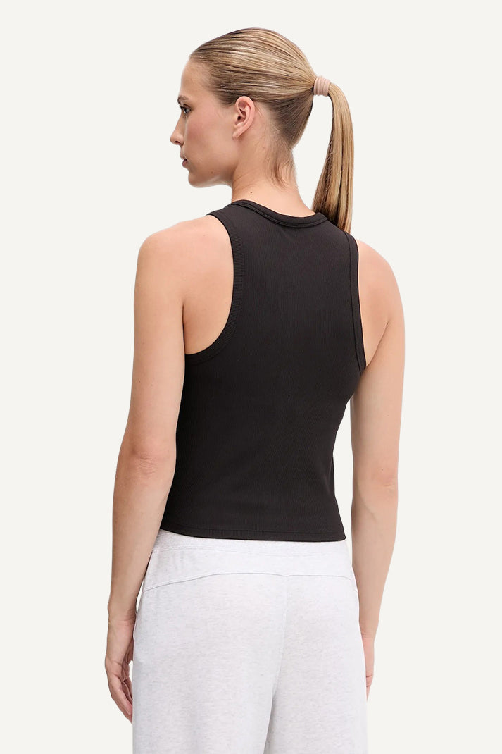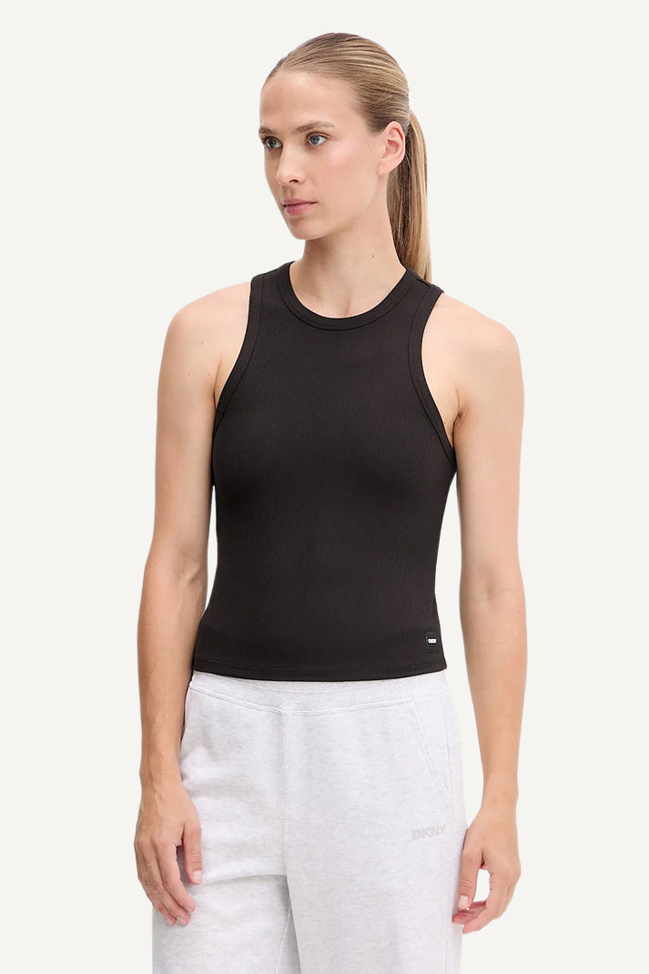 Elevate your basics with the DKNY High Neck Tank in classic black. This versatile tank top features a modern high neckline and a sleek, flattering fit-perfect for layering or wearing solo. An essential piece for effortless, contemporary style.