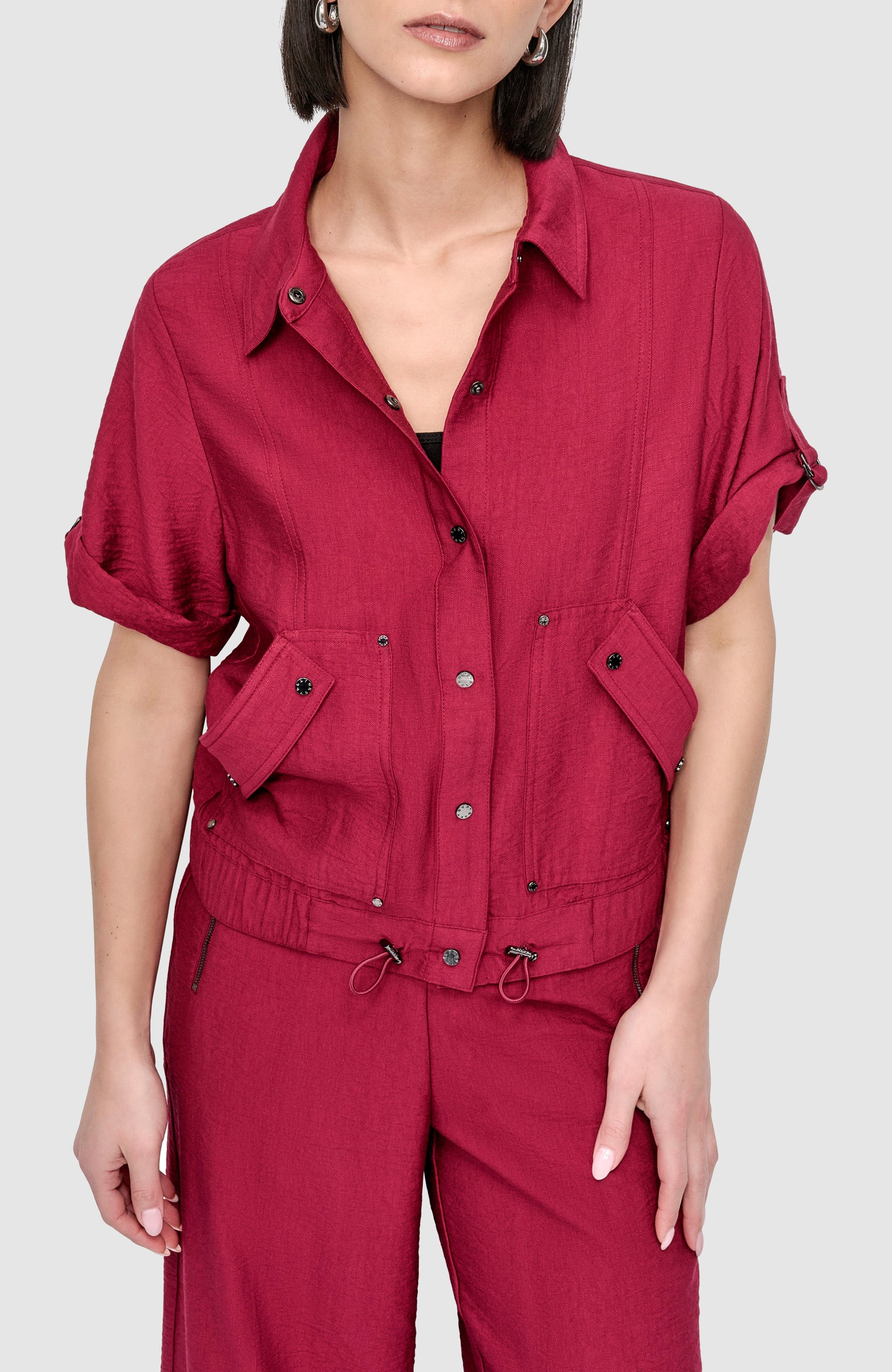 This DKNY Short-Sleeved Overshirt features a pointed collar and short sleeves for a polished yet relaxed look. Designed with a front button closure and practical side pockets, it combines style with functionality. Ideal for layering, this versatile piece offers both comfort and sophistication.