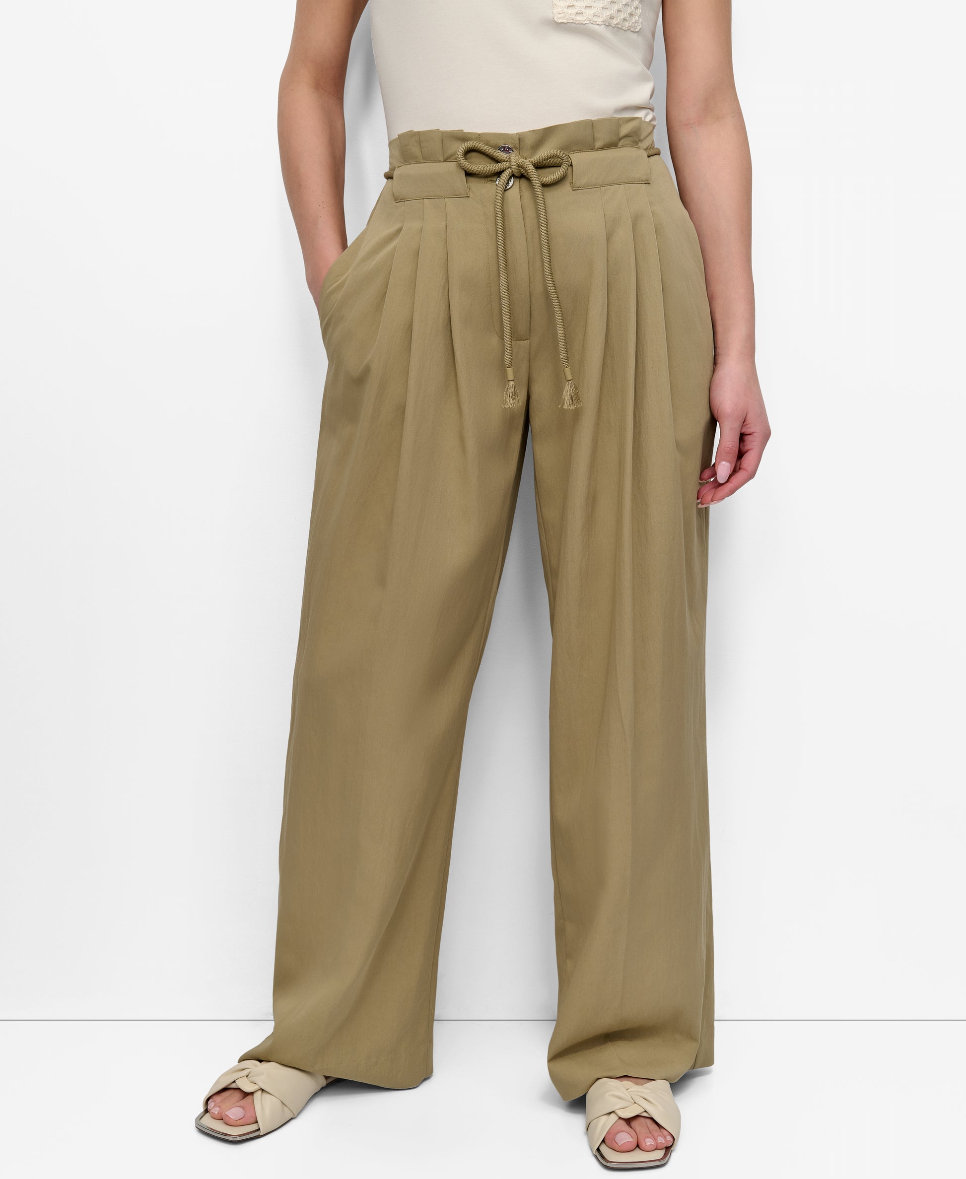 Crafted from a premium blend of 85% rayon and 15% nylon, these DKNY rope tie front wide leg pants offer exceptional comfort and durability. Designed with a flattering wide leg cut and an adjustable rope tie waist, they provide a sophisticated yet relaxed silhouette ideal for both work and casual settings. Elevate your wardrobe with these versatile pants that balance style and functionality expertly.