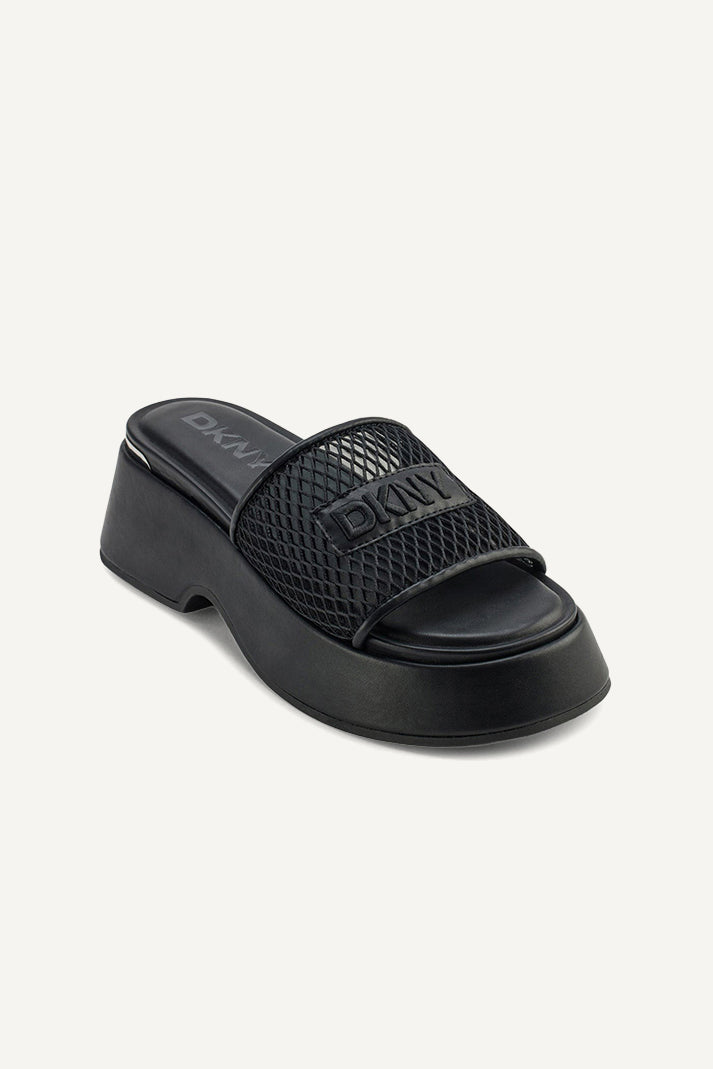 Step up your style game with the IREDELL PLATFORM SLIDE by DKNY. These chic black slides offer unparalleled comfort and elevated design, perfect for effortless sophistication. Ideal for any occasion, they seamlessly blend fashion and function for the modern trendsetter.