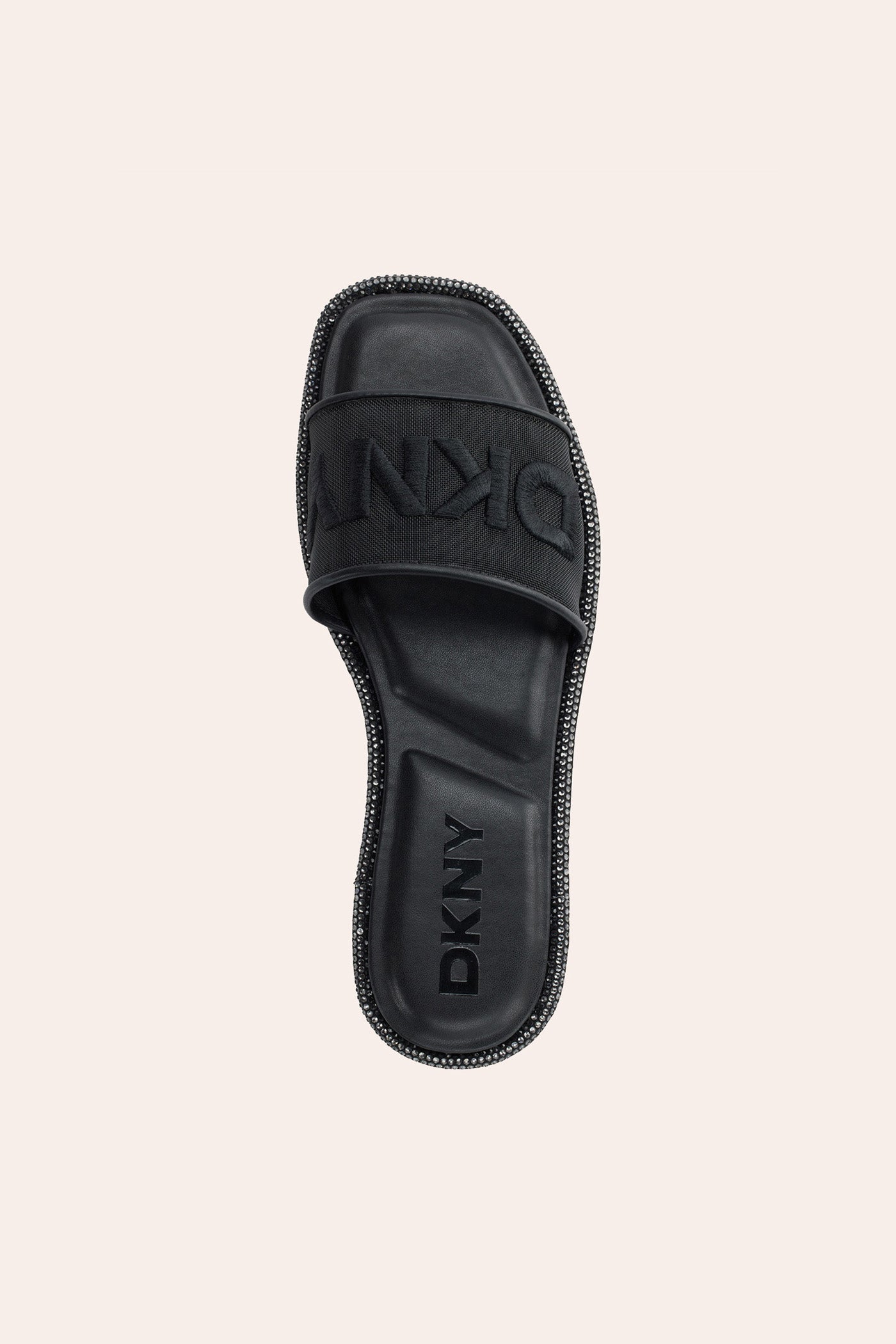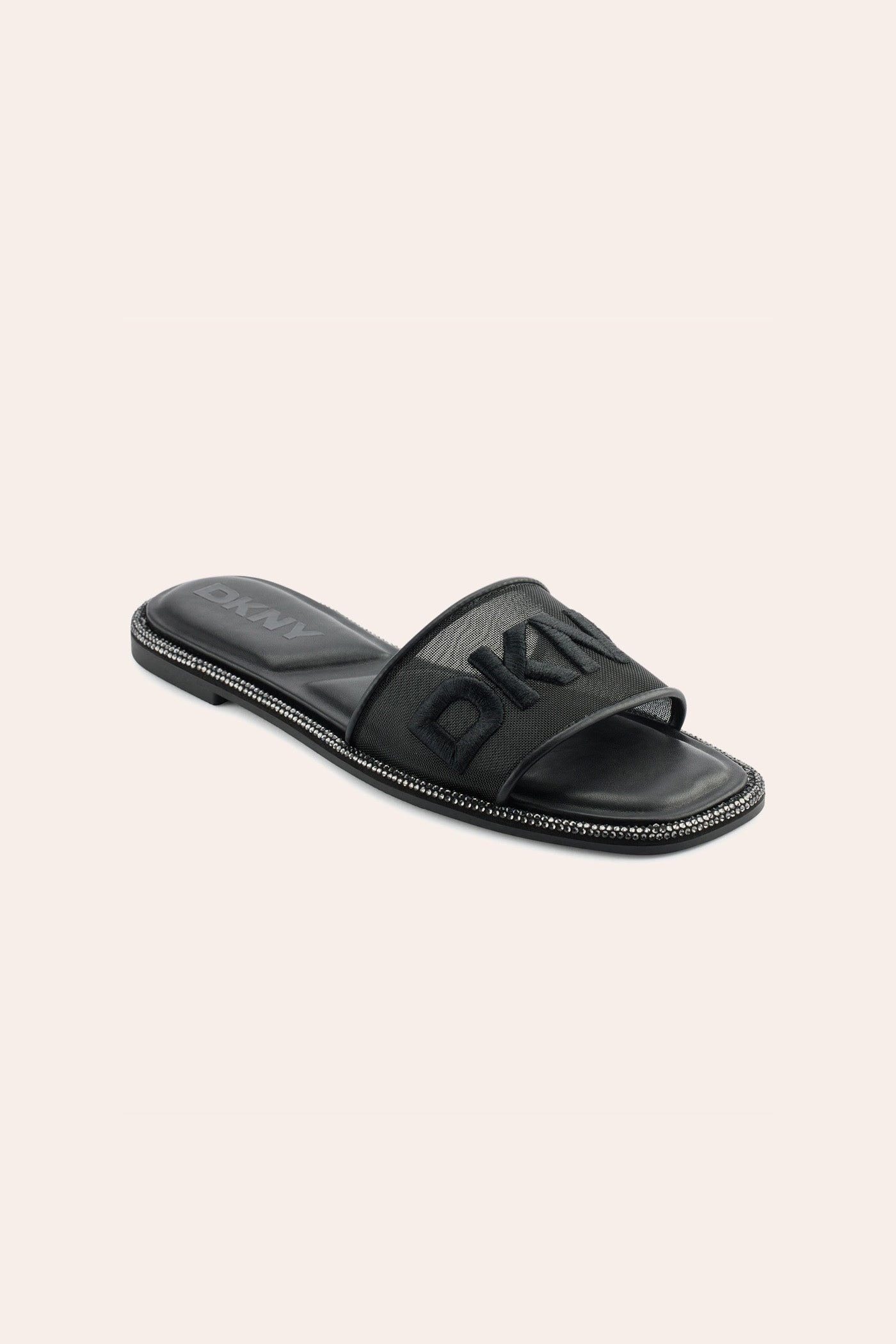 Elevate your holiday style with the BADIN LOGO FLAT by DKNY in sleek black. Perfect for any festive occasion, these elegant flats offer comfort and sophistication. Make a statement this Holiday24 season with timeless design and effortless chic.