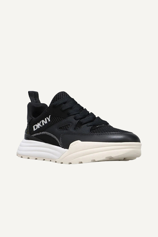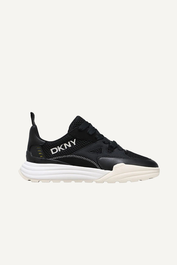 Step up your style game with the DKNY ZANIRA Lace Up Sneaker in classic black. Featuring a sleek silhouette and comfortable fit, these modern sneakers effortlessly blend urban sophistication and everyday versatility, making them an essential addition to your footwear collection.