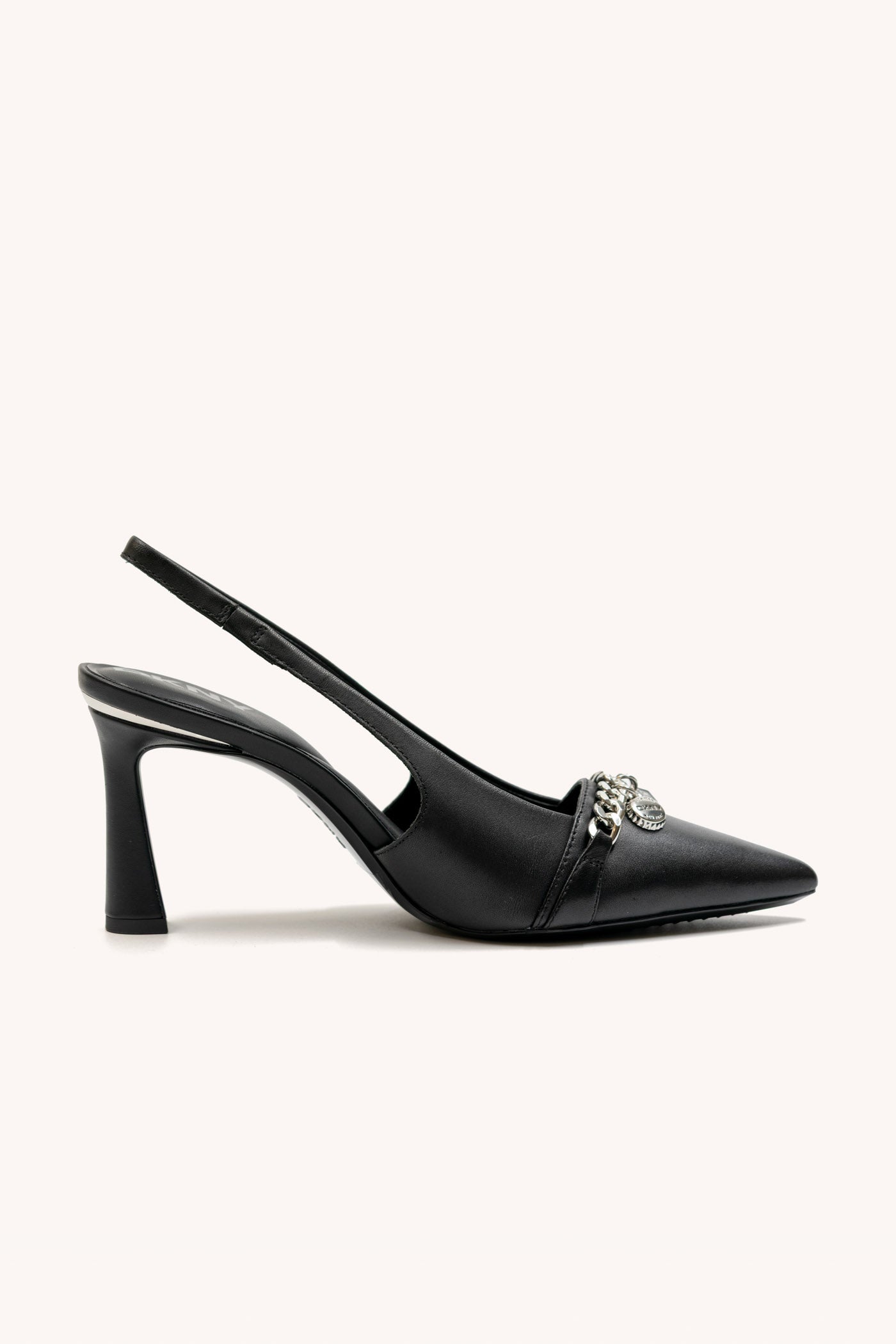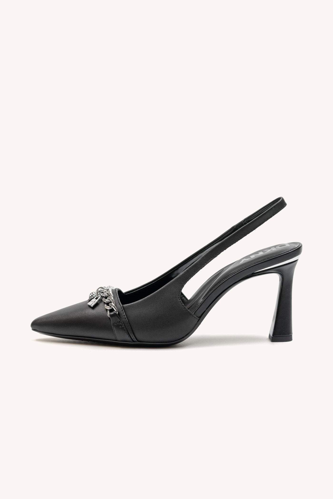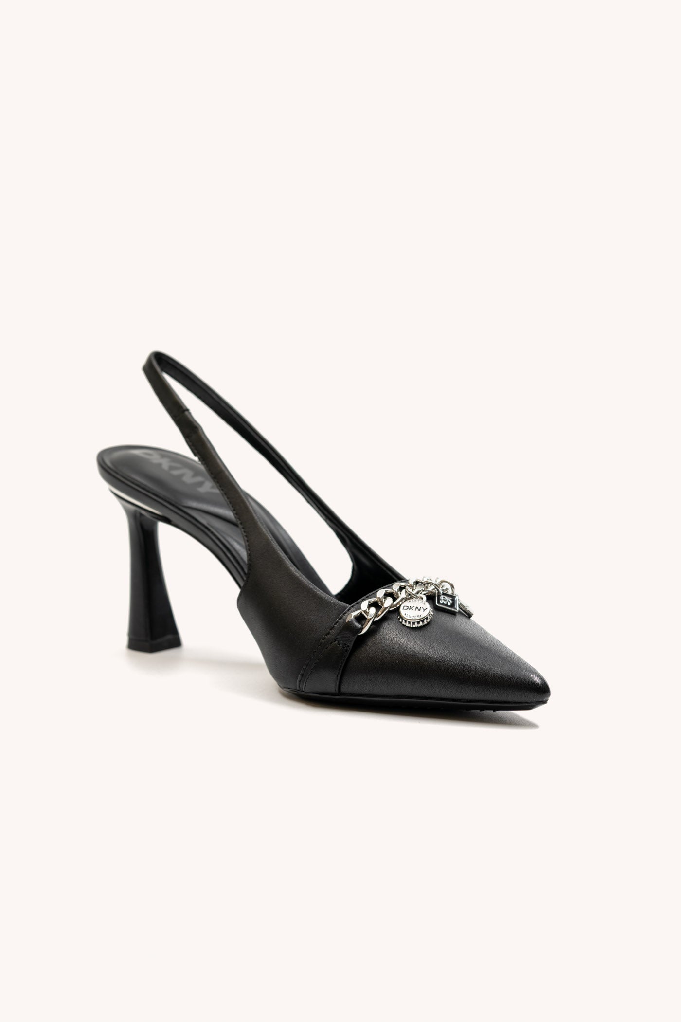 Step out in style with the CIRONA SLINGBACK by DKNY. These sophisticated black heels feature a sleek silhouette, comfortable slingback strap, and elegant pointed toe-perfect for elevating both everyday looks and special occasions. Refined and versatile for any wardrobe.