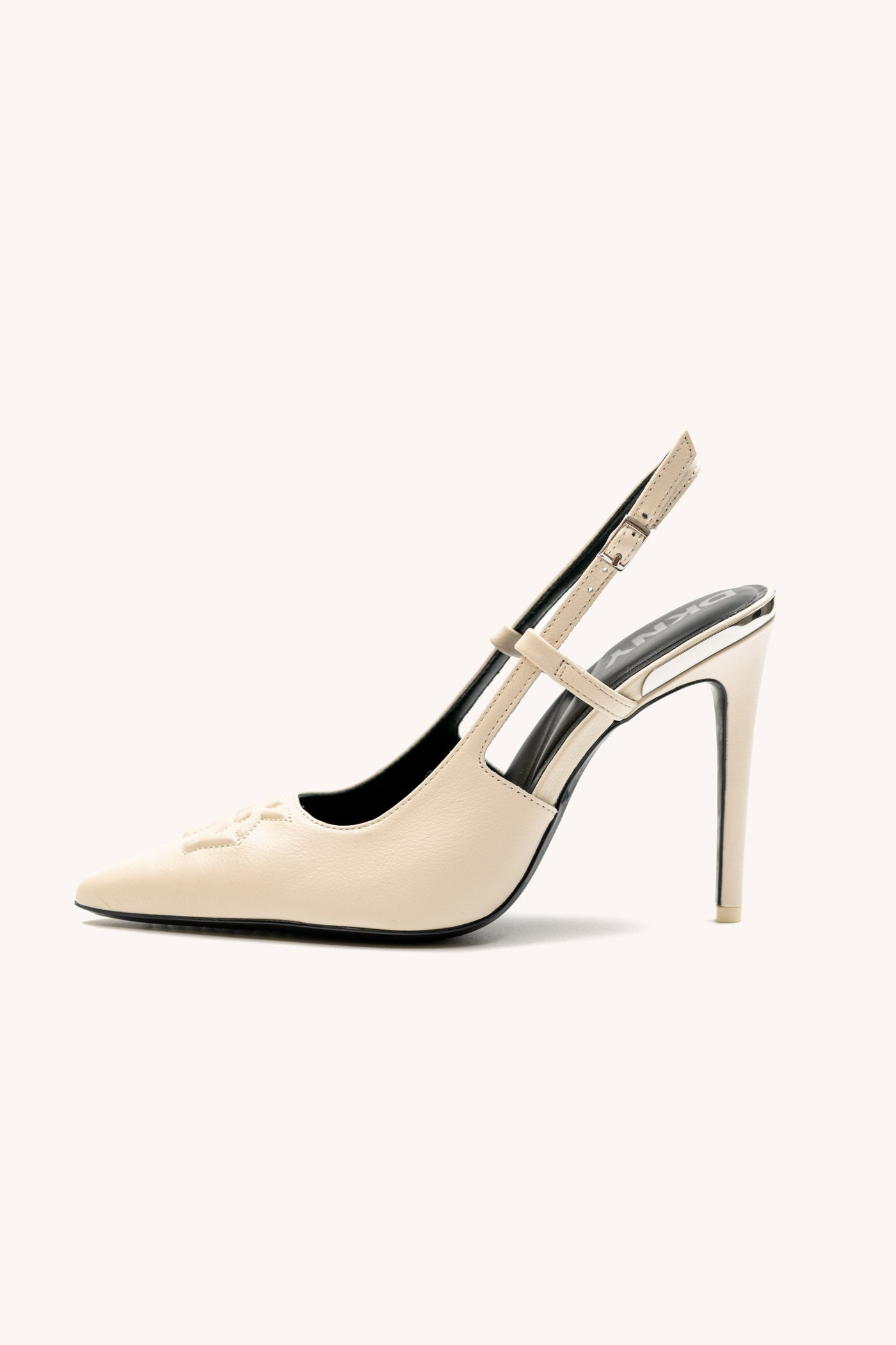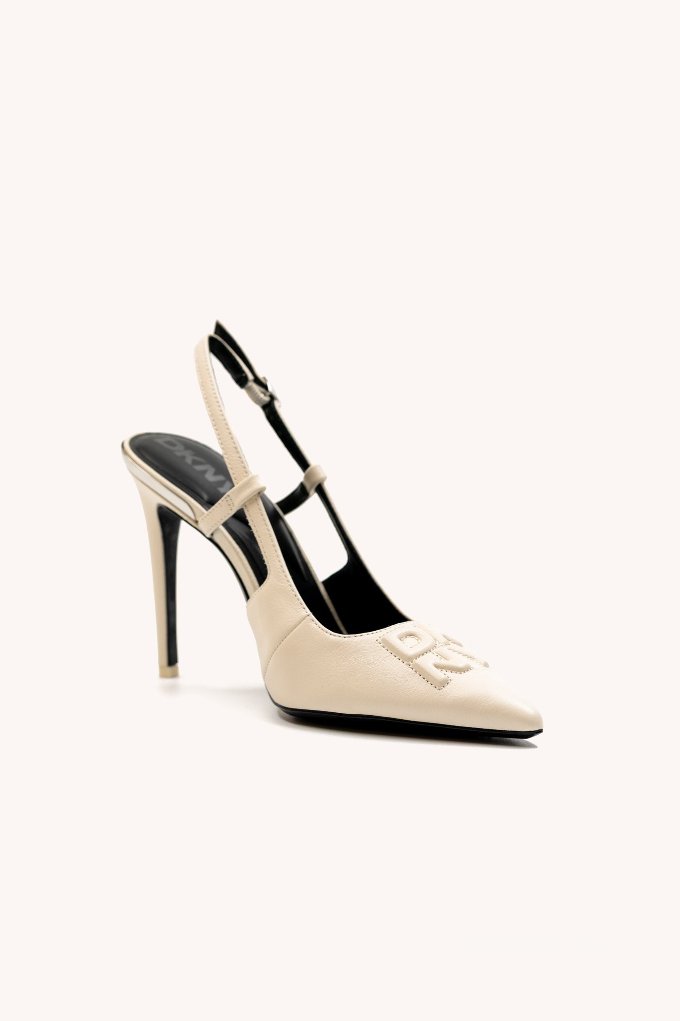 Elevate every look with DKNY's Mediville Slingback Heels in elegant beige. Featuring a timeless pointed toe, comfortable slingback strap, and a chic stiletto heel, these versatile heels are perfect for both sophisticated office wear and stylish evening outings.