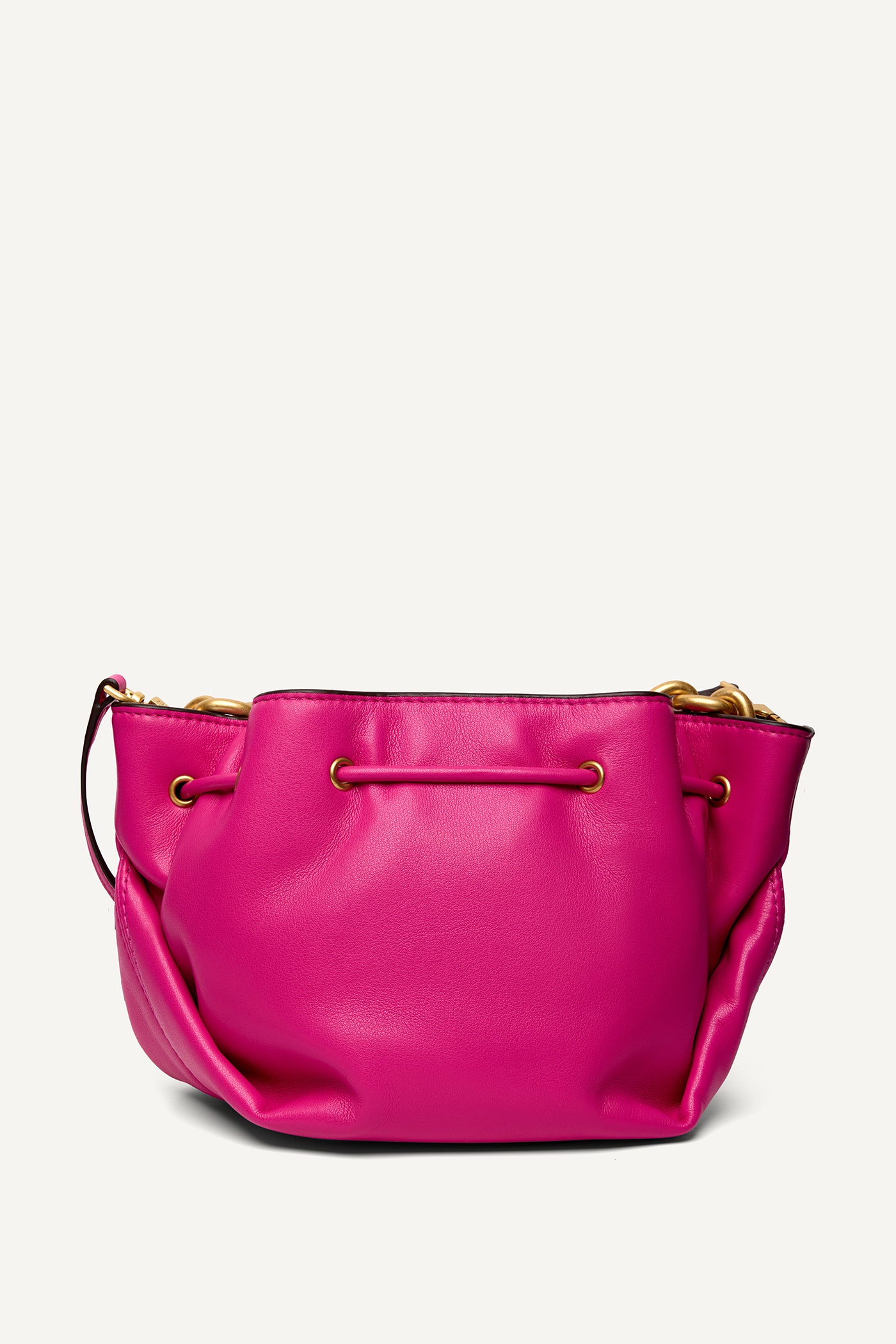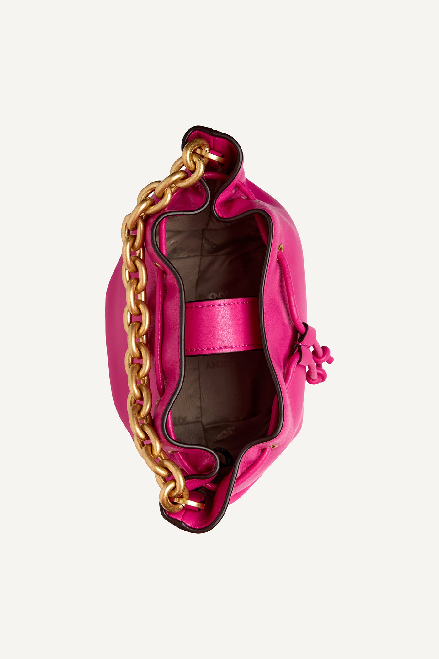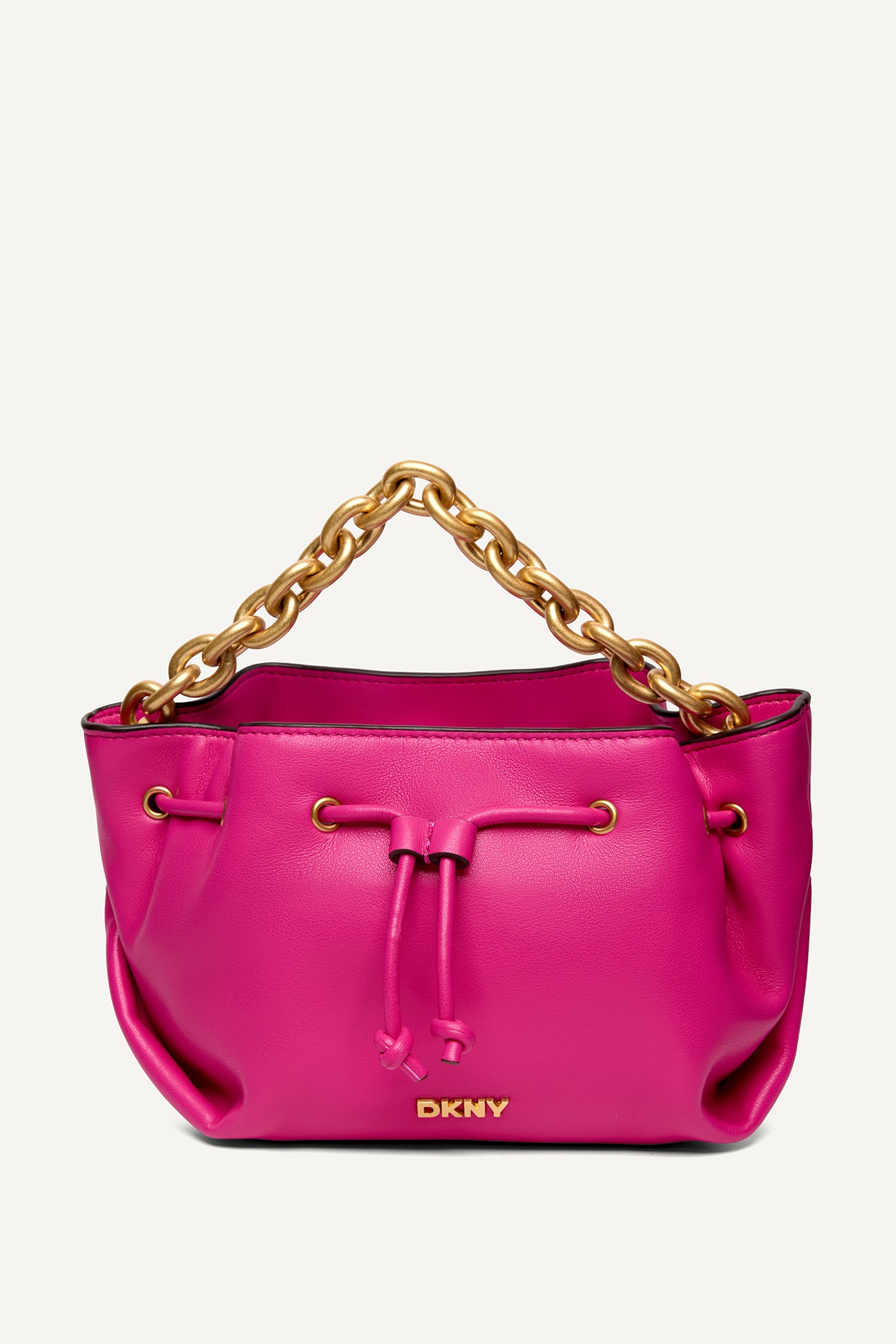 Add a vibrant touch to any outfit with the DKNY Petal Small Double Strap Crossbody in pink. This compact bag features two adjustable straps, sleek polished hardware, and secure zip closure-perfect for carrying essentials in style, day or night.