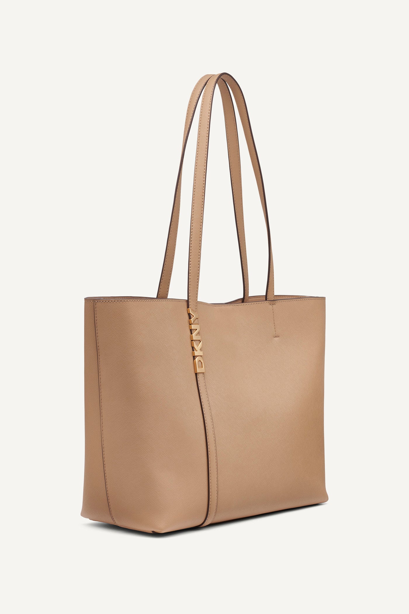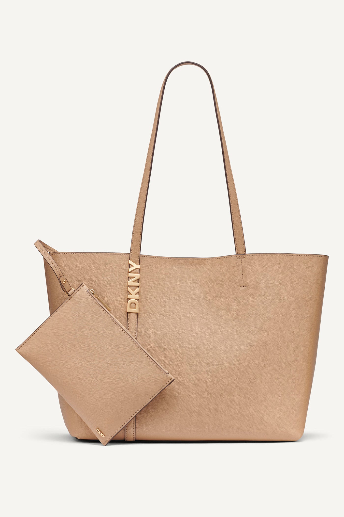 Elevate your everyday style with the DKNY AVRIL Tote in beige. Spacious yet sophisticated, this versatile tote features elegant lines, durable construction, and comfortable shoulder straps-perfect for work or weekend errands. A chic addition to any modern wardrobe.