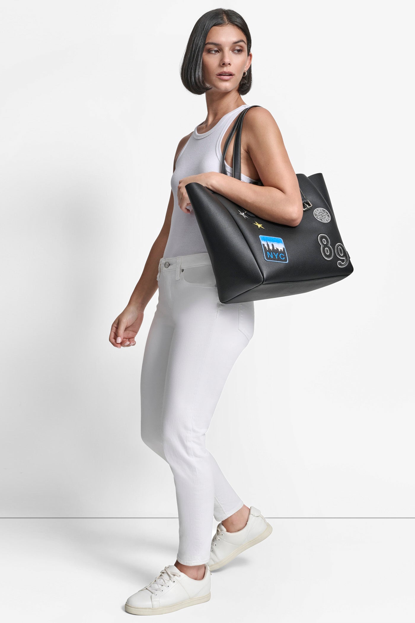 Elevate your everyday style with the DKNY REESE TOTE in classic black. Spacious and elegantly structured, this versatile tote bag features sturdy handles and a sleek design, perfect for carrying essentials from work to weekend in sophisticated, timeless fashion.