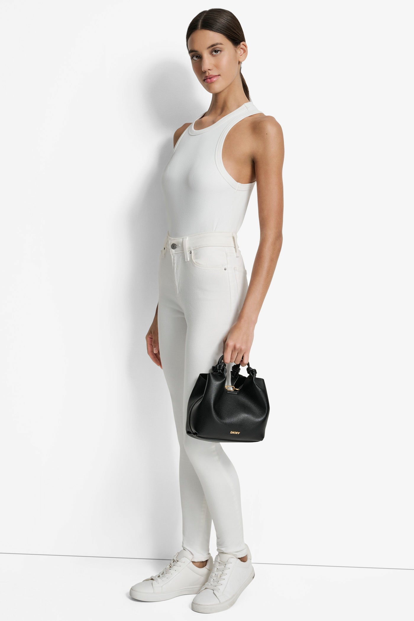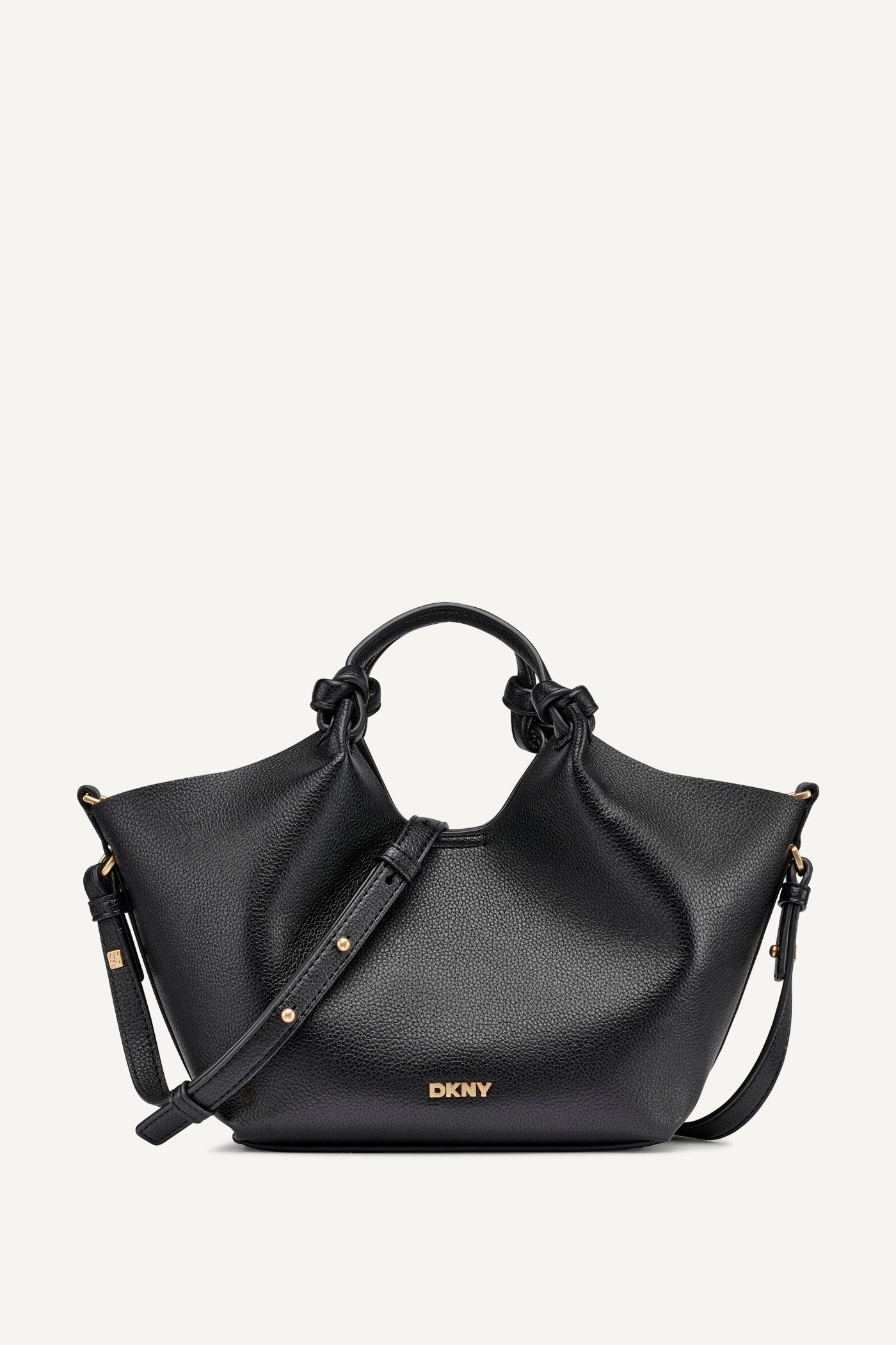 Effortlessly chic, the DKNY Paula Small Tote in classic black delivers everyday versatility. Crafted with precision, its compact size fits essentials without bulk. Gold-tone hardware and structured silhouette elevate any outfit, making this a sophisticated, modern must-have tote bag.