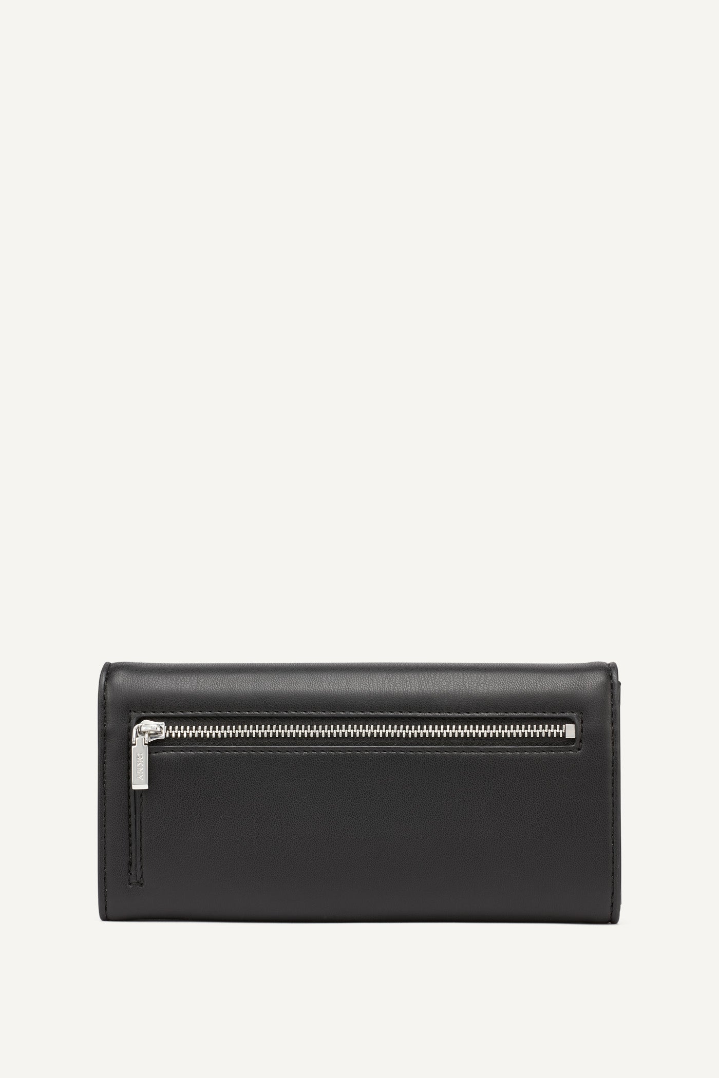 Sleek and sophisticated, the DKNY Tinsley Bi-Fold Wallet in classic black features multiple card slots and a secure currency compartment. Crafted for durability and elegance, this compact accessory effortlessly blends practicality with modern style-perfect for everyday organization and chic appeal.
