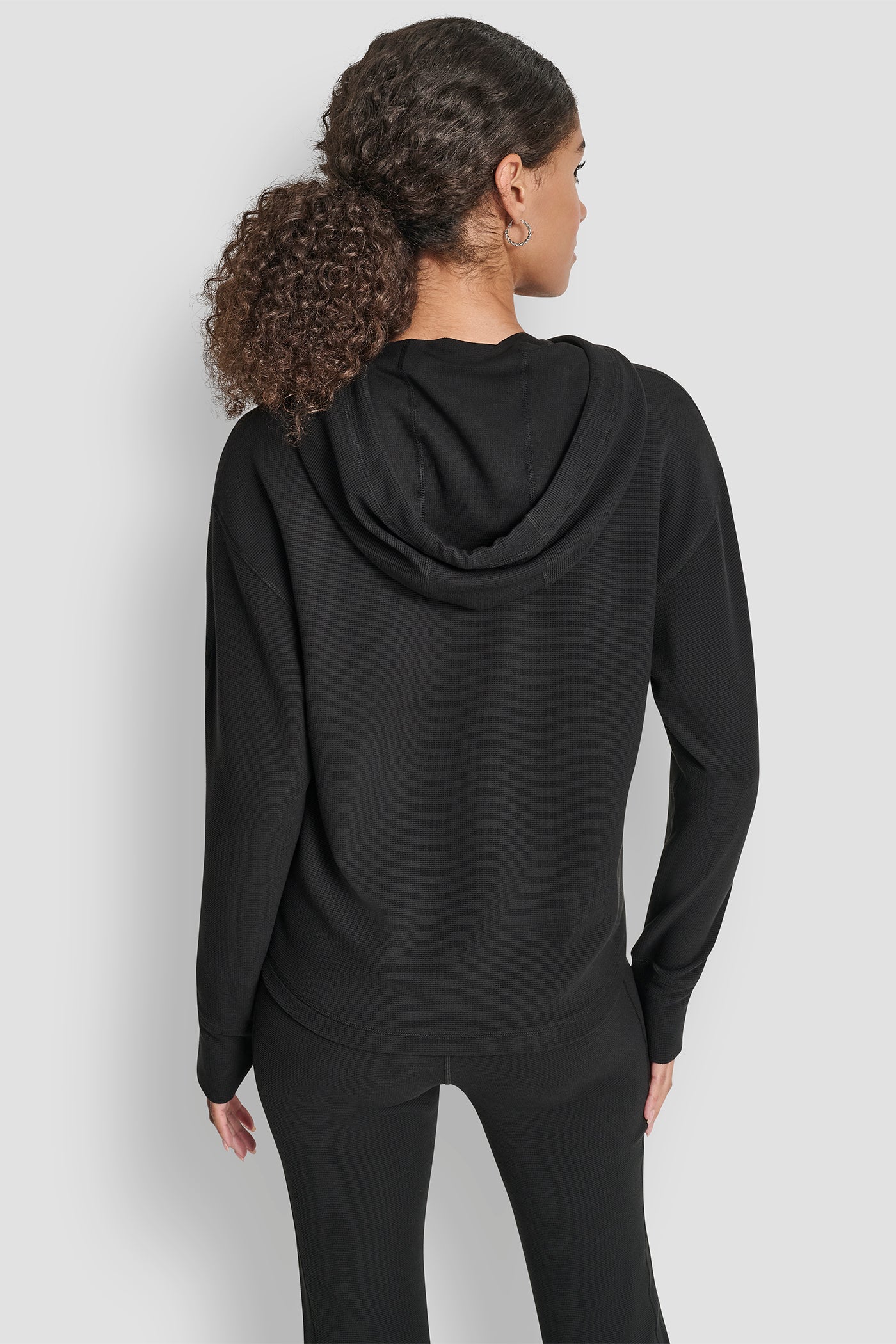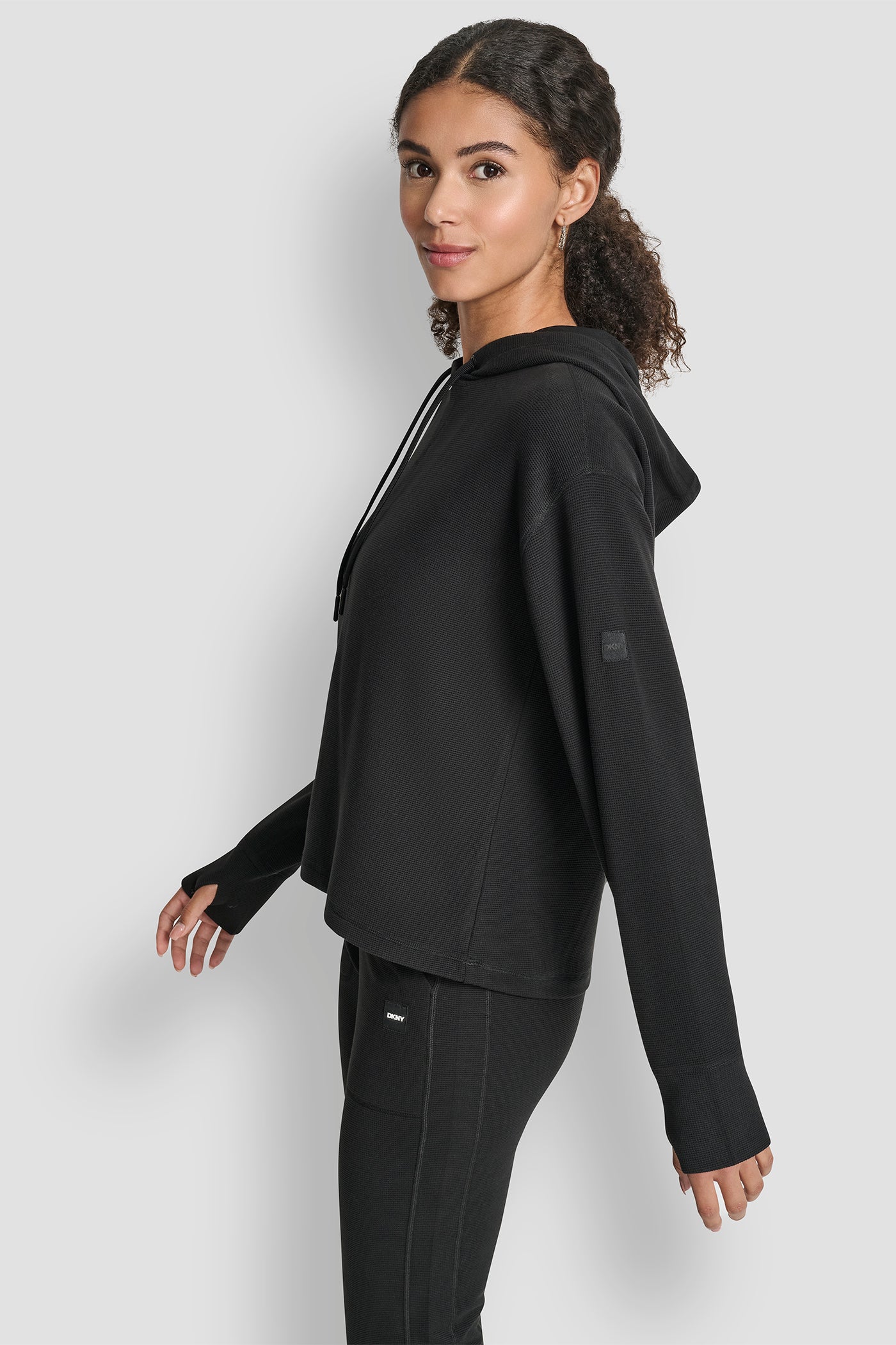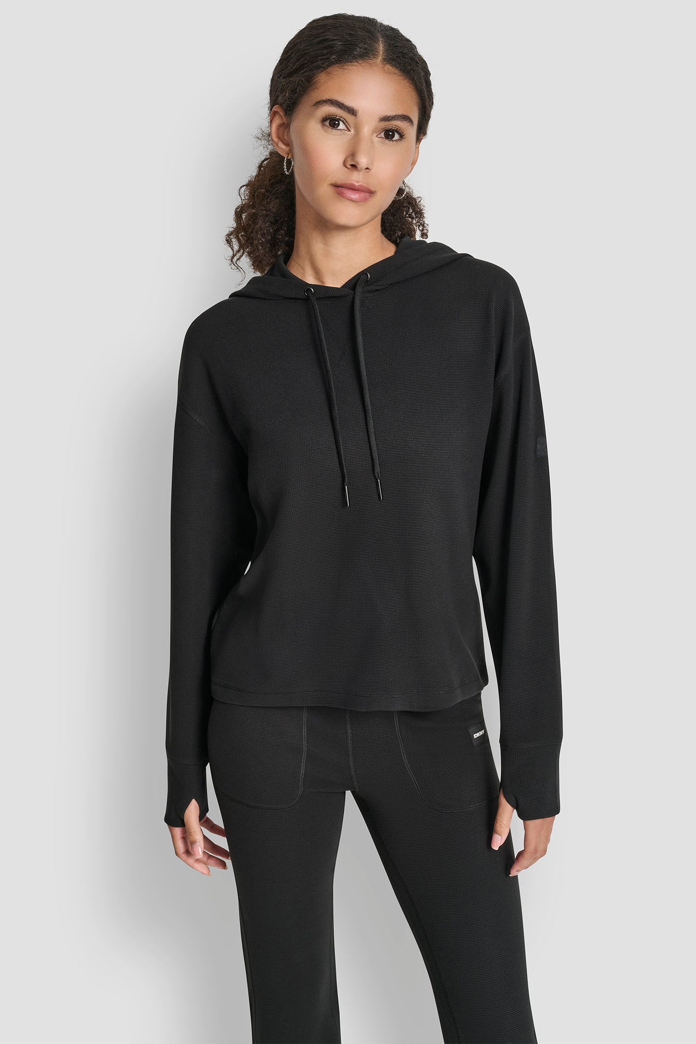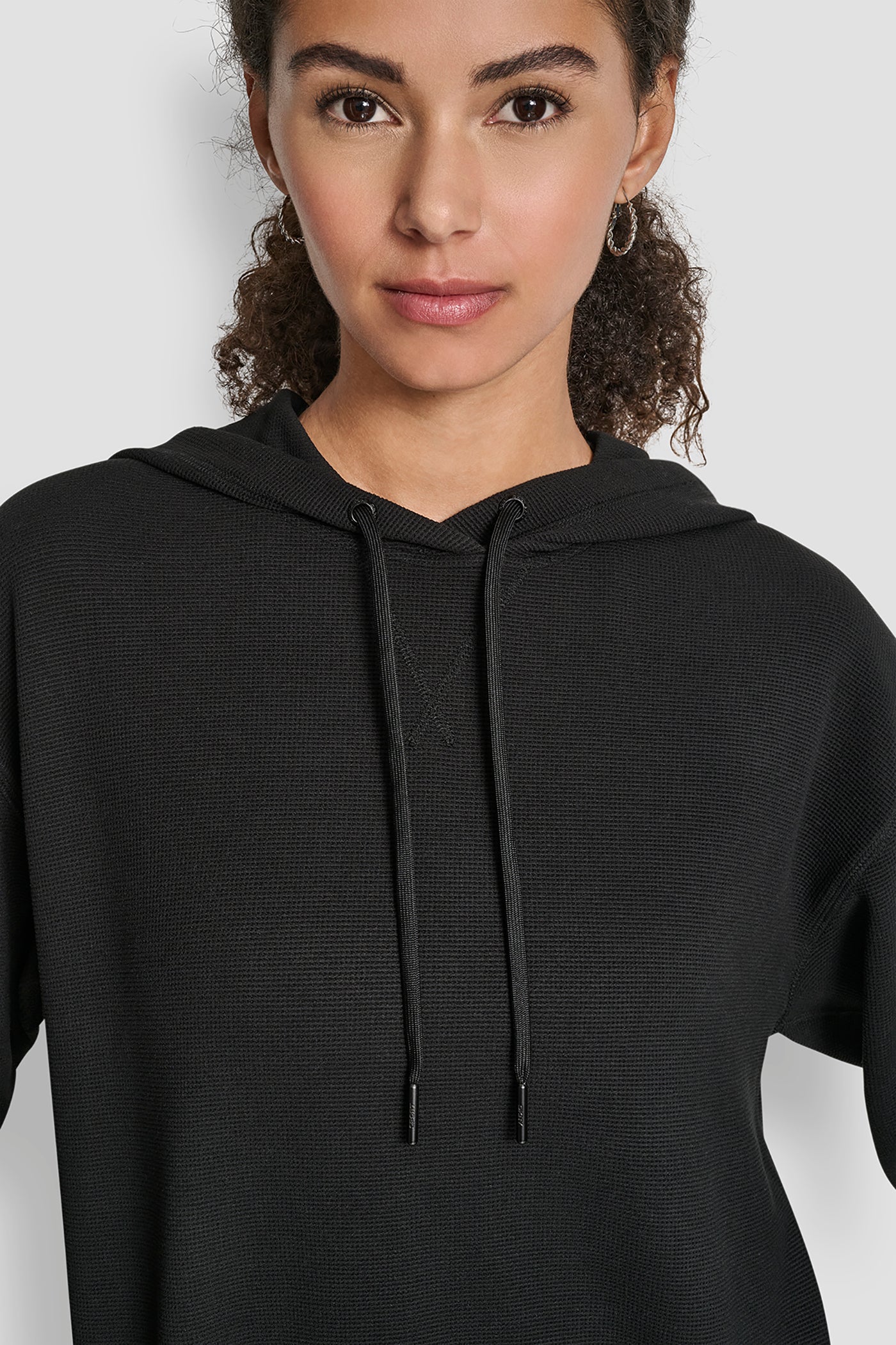 Stay cozy and stylish with the DKNY TRNDSD THRML PO HD sweatshirt in classic black. Featuring a modern pullover design and premium thermal fabric, this sweatshirt offers ultimate comfort and warmth perfect for layering or lounging in effortless, urban style.