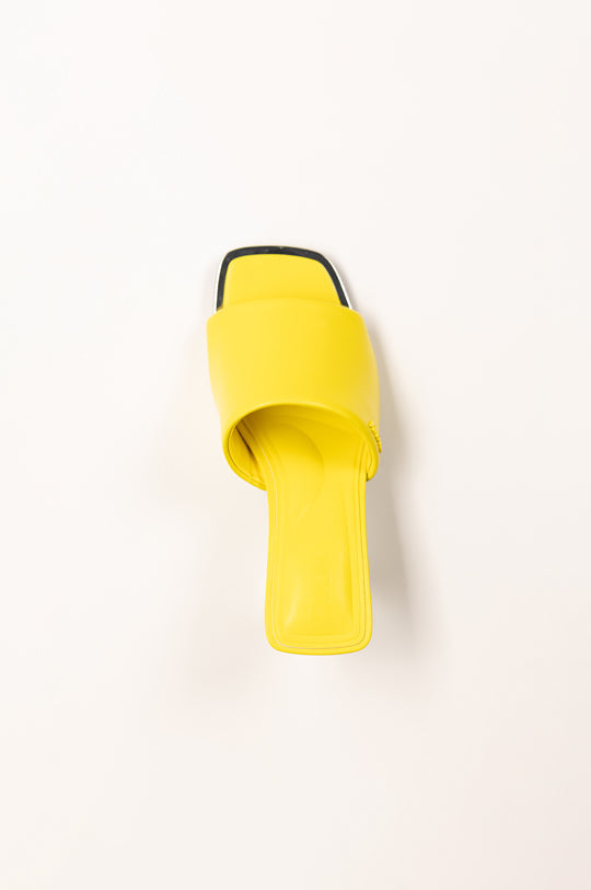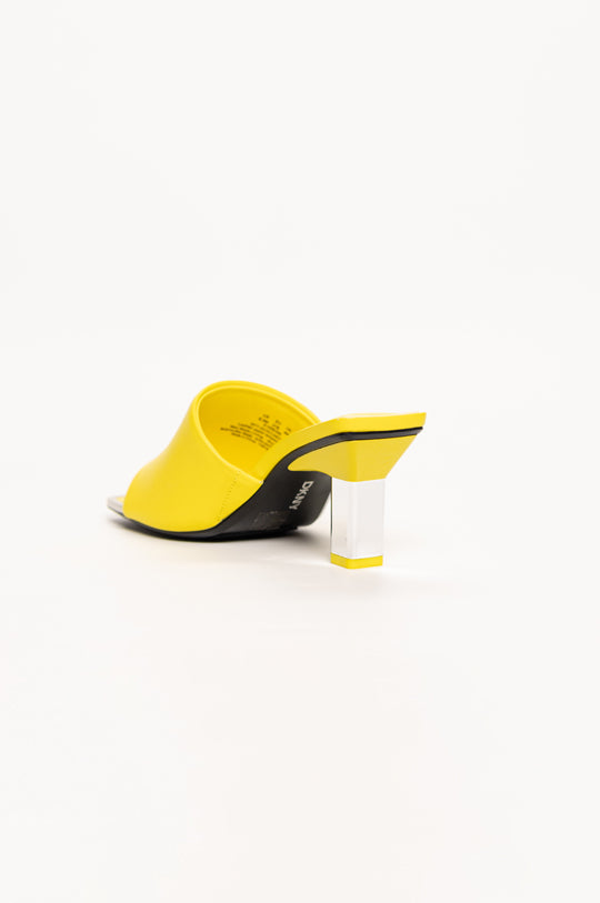 Step into sophistication with the KELLEY HEELED MULE by DKNY. Featuring a vibrant yellow hue, these elegant mules elevate any outfit effortlessly. Perfect for the Holiday24 season, embrace timeless style and comfort with this must-have footwear addition.