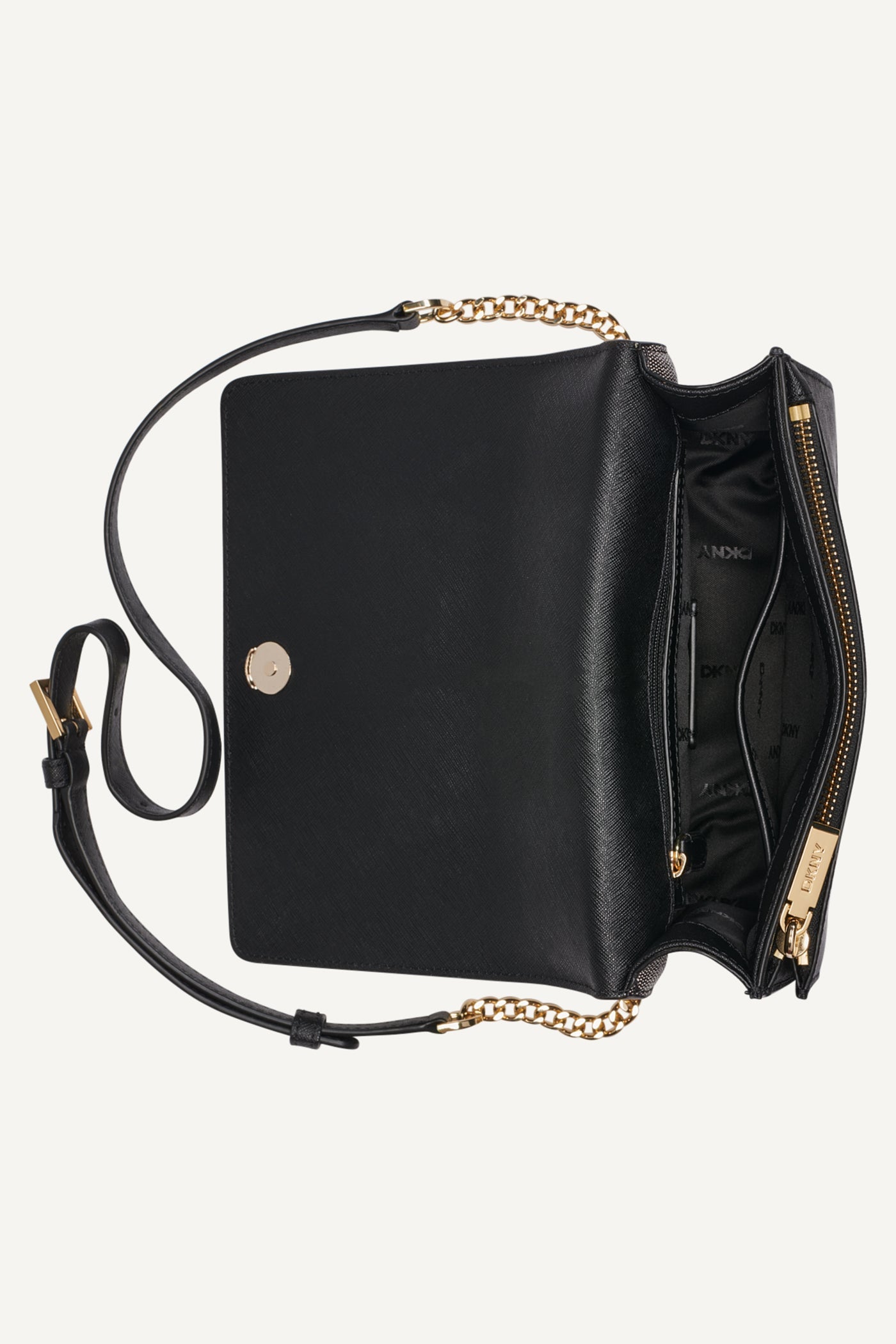 Elevate your ensemble with the ECHO CHAIN FLAP CROSSBODY by DKNY. In sophisticated black, this chic accessory features a stylish chain strap and flap closure, blending elegance with practicality. Perfect for versatile day-to-night wear.