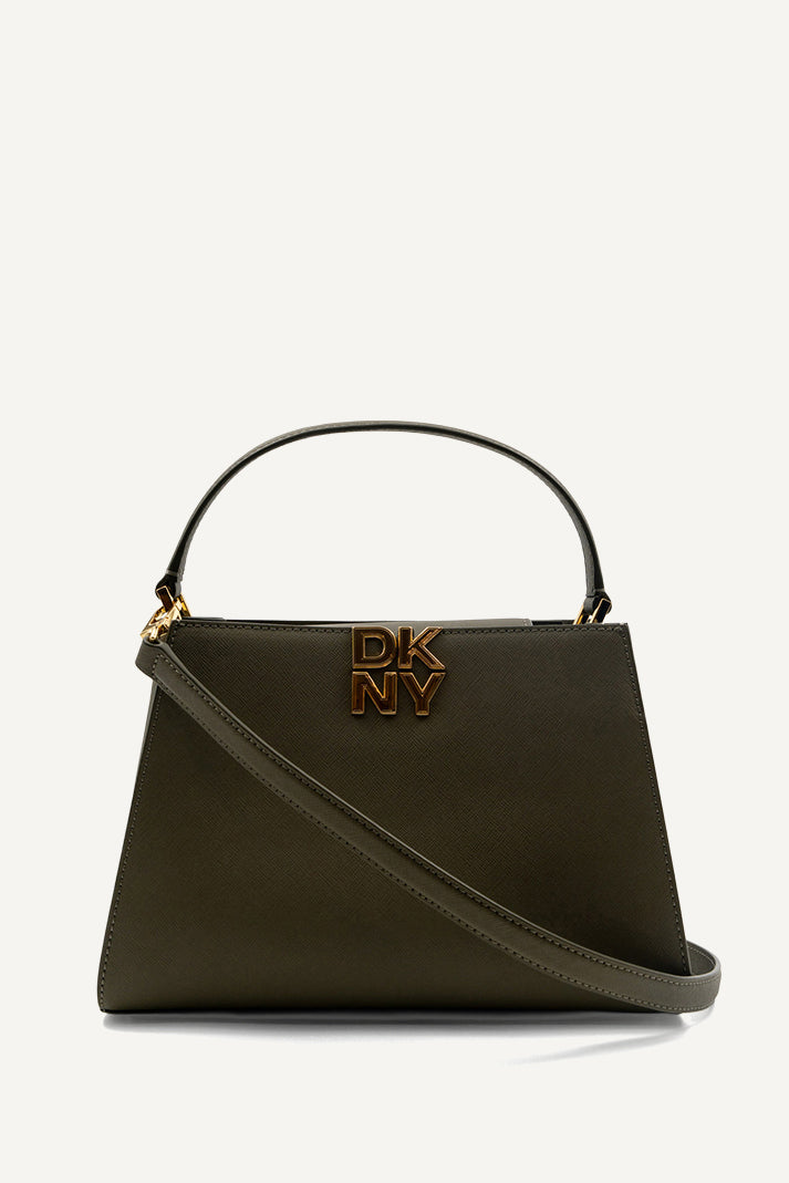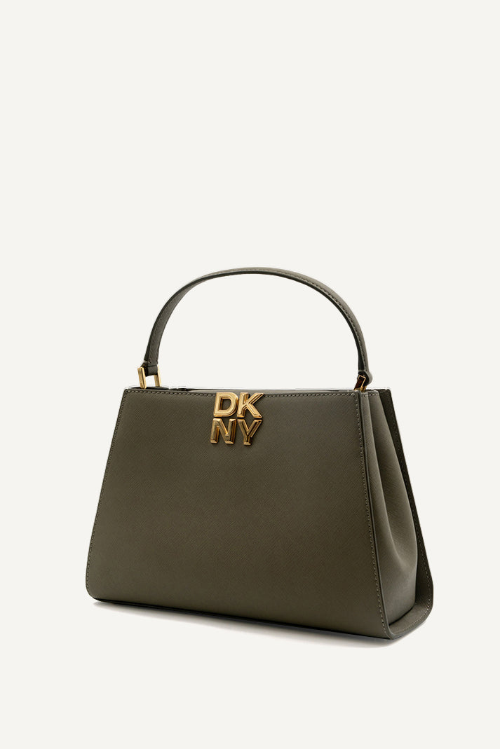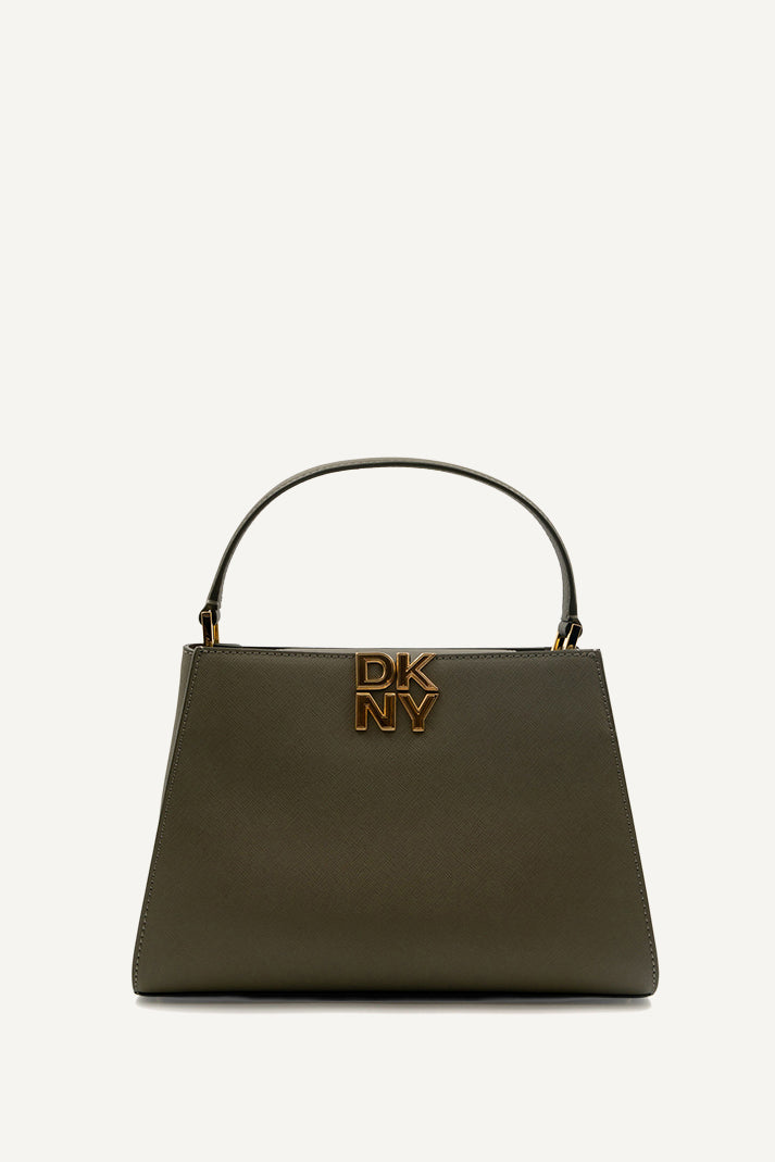 Elevate your everyday style with the DKNY Foster Medium Satchel in vibrant green. This top handle bag features a structured silhouette, spacious interior, and polished gold-tone hardware-perfect for carrying essentials with a modern, sophisticated edge.